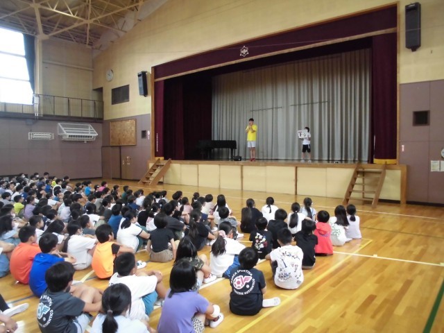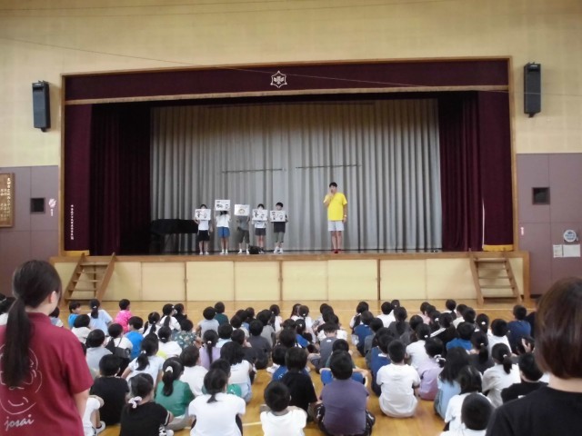 避難終了後には、安全担当の先生から、「いかのおすし」や「はちみつ」についての説明がありました。