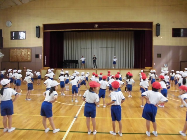 金曜日の朝の時間は、全校体操です。
