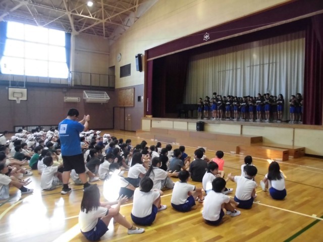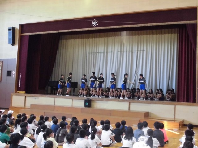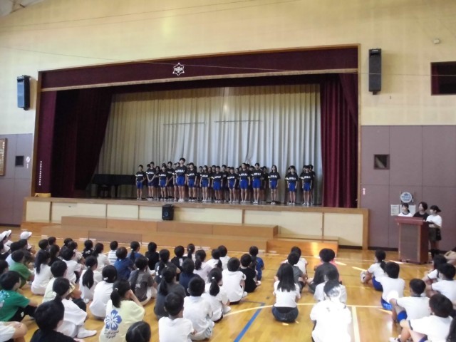 本日(26日)の朝体操の時間は、陸上記録会に出場する選手の壮行会が行われました。