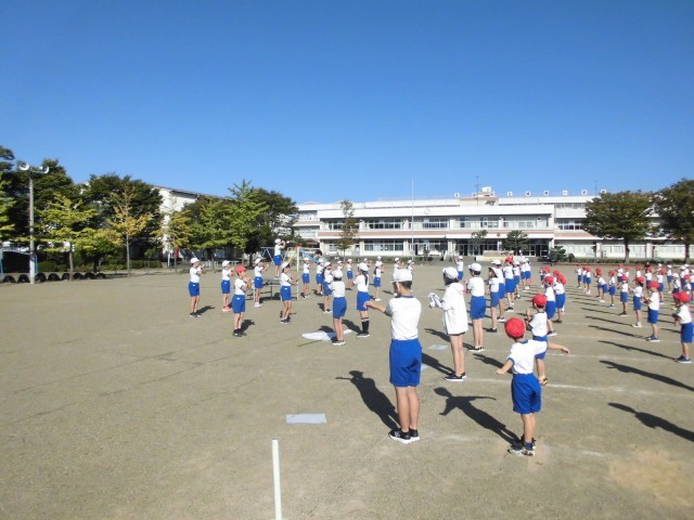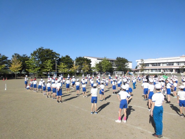 前回整列は練習してるので、並ぶのも早くなってきています。また、ラジオ体操も1学期から練習を始めているので、みんな上手になってきています。