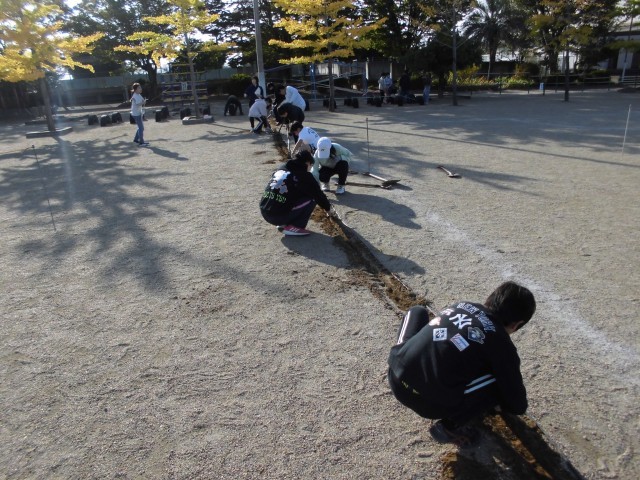 本日の午後は、5,6年生が運動会の準備をしてくれました。