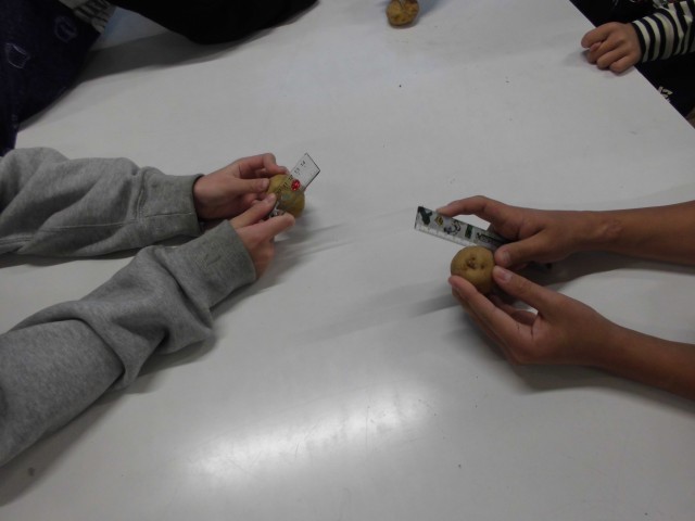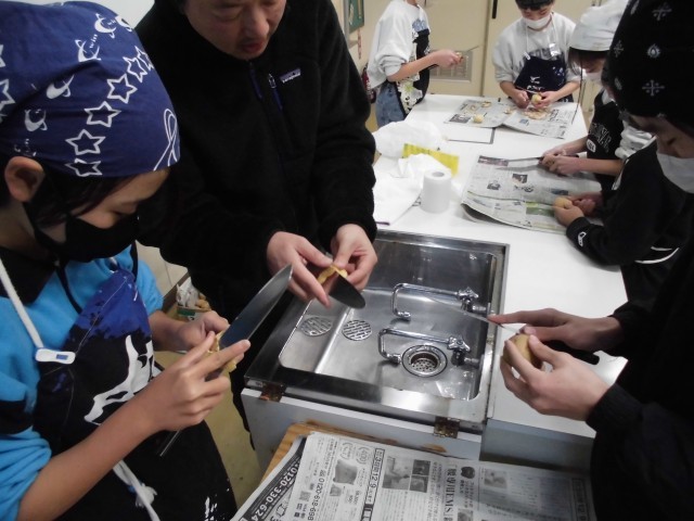 6年生 家庭科(じゃがいもの皮むき) 公開日 2025/12/12 更新日 2025/12/12 お知らせ 11日は、6年生が合同の家庭科で、じゃがいもの皮むきを行いました。 定規を使ってイメージトレーニングを行ってから、実際の包丁で皮をむきましたが、担任二人は手を切らないかヒヤヒヤしながら見守っていました。 包丁を使い慣れている子と、そうでない子もいましたが、けがをする子は一人も出ず、無事終了することができました。 +1 1年生 2年生 3年生 4年生 5年生 6年生