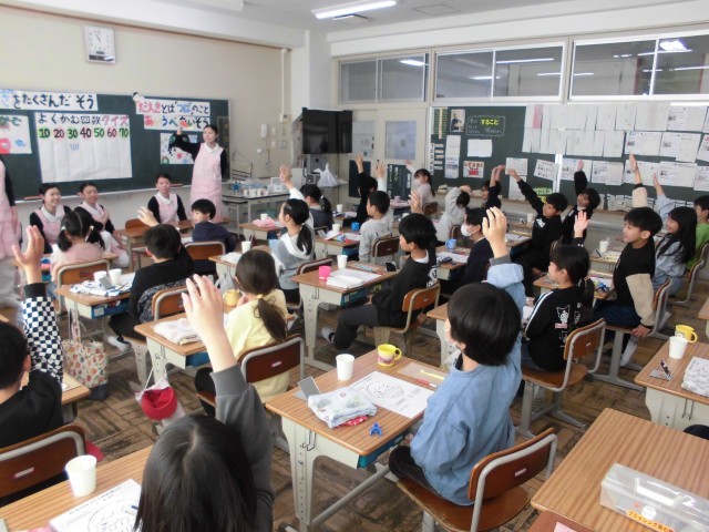 本日(18日)は、3校時に2年生の歯科保健指導がありました。
