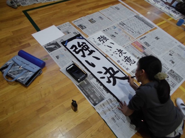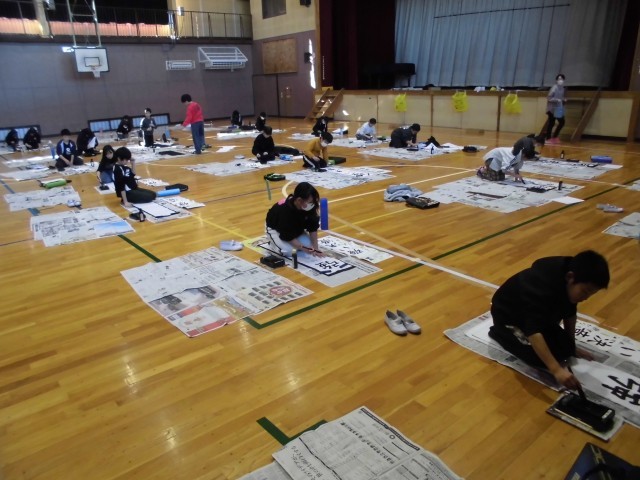 本日(14日)は、5年生が体育館で書き初めを行いました。