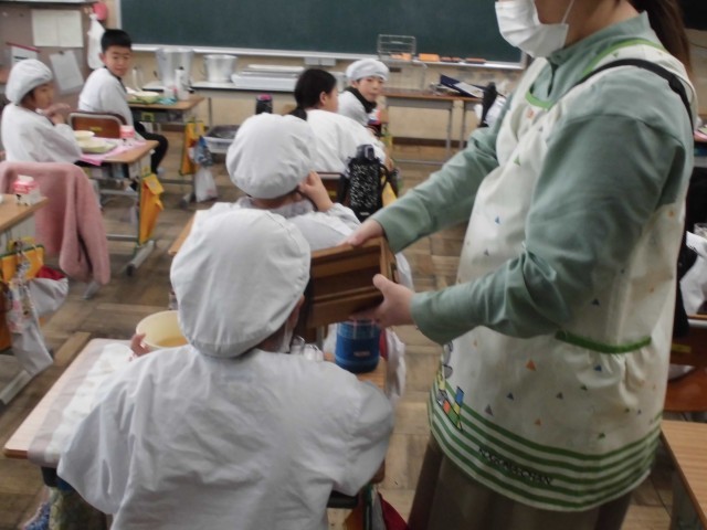 給食の時間に食育(かつお出汁について) 公開日 2026/01/15 更新日 2026/01/15 お知らせ 給食の時間に、栄養士さんが3年生の教室で、かつお出汁についてのお話をしてくれました。実際にかつお節を作るためのかんなのついた、昔の道具を持ってきてくれて子どもたちに見せてくれました。削ったかつお節を見たり、匂いを嗅いだりして、今日の給食のお味噌汁に出汁として入っているということを学びました。 +1 1年生 2年生 3年生 4年生 5年生 6年生