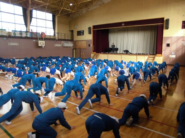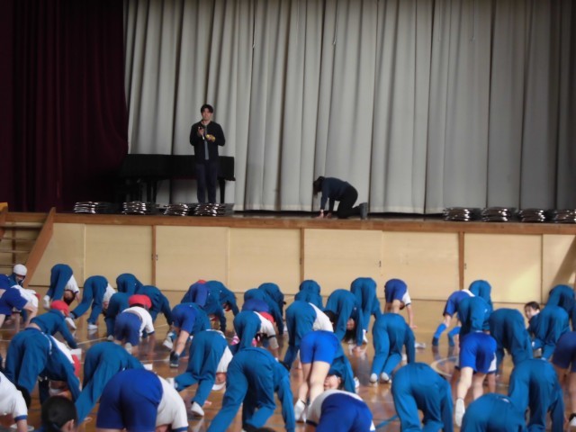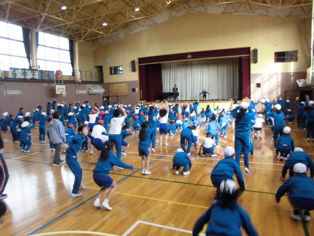 朝体操 公開日 2026/03/06 更新日 2026/03/06 お知らせ 3月の朝体操は、これまでの長縄も終わり、体育館での運動になりました。体力を上げるために、効果的な運動の紹介がありました。みんな、いろいろな動きに取り組みました。子どもたちは、とても元気に取り組んでいましたが、一番きつそうだったのが、見本を示した先生でした。 +1 1年生 2年生 3年生 4年生 5年生 6年生