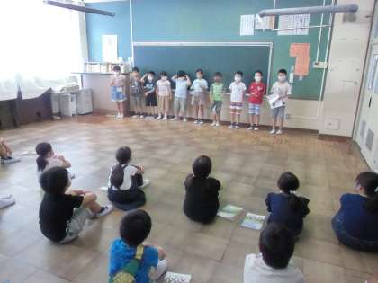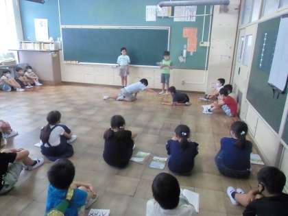 3年生は、国語の学習で「のらねこ」の音読劇を行いました。「のらねこ」の学習目標は、「登場人物の性格を考えながら読もう」です。音読劇では、登場人物になりきり、暗記した台詞を気持ちを込めて言葉や体の動きで表現できている児童もいました。また、グループで協力し合い、次の動きを助言したり、台詞を忘れてしまった仲間にそっと教えてあげたりしながら、音読劇をやり遂げることができました。