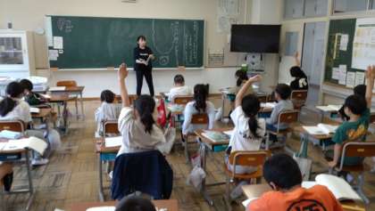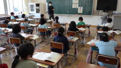 2年1組の「道徳」です。きまりを守ることの大切さについて、先生の話を聞いたり、友達の意見を聞いたりしながら、自分の考えを深めていました。