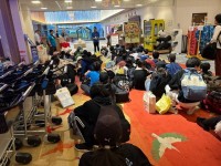 ホテルの駐車場で退所式をして、キッザニアに出発です。