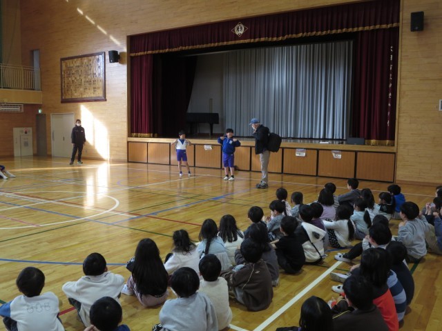 その後、スクールサポーターさんから、登下校中に不審者に会ったときの対応等についてお話しいただきました。