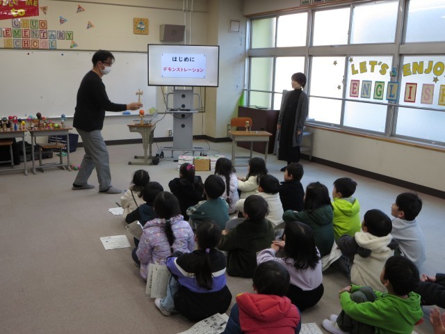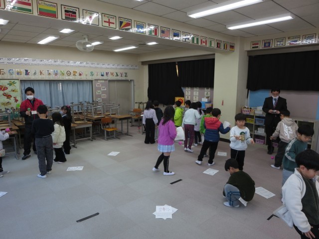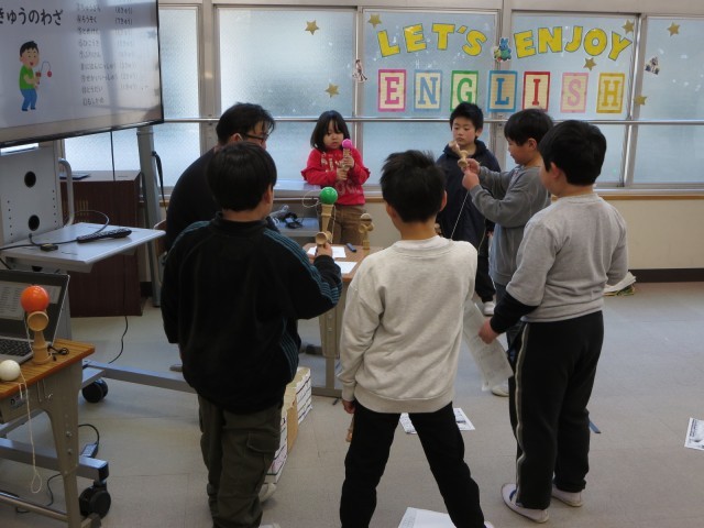 日本けん玉協会の内田さんご夫妻を講師にお招きし、1年生のけん玉教室を実施しました。