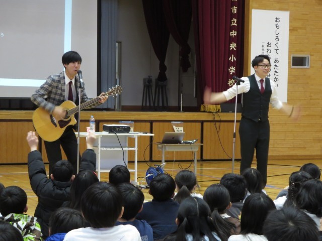 4校時と5校時に、一般社団法人社会人お笑い協会から講師の先生にお越しいただき、人権講演会を行いました。