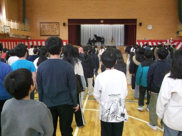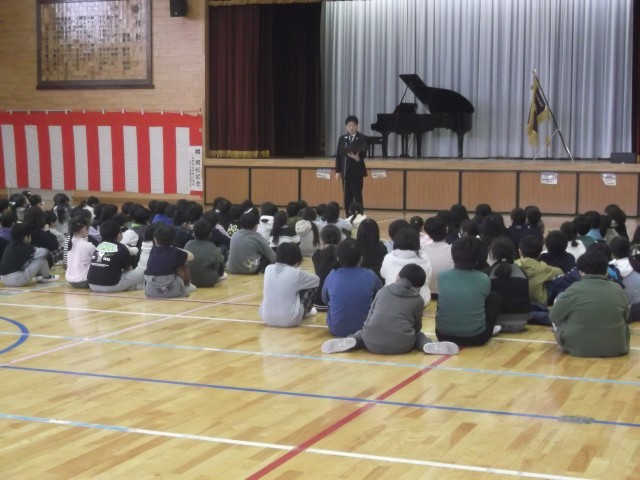 校歌合唱では、子供たちの元気な歌声が体育館に響き渡りました。