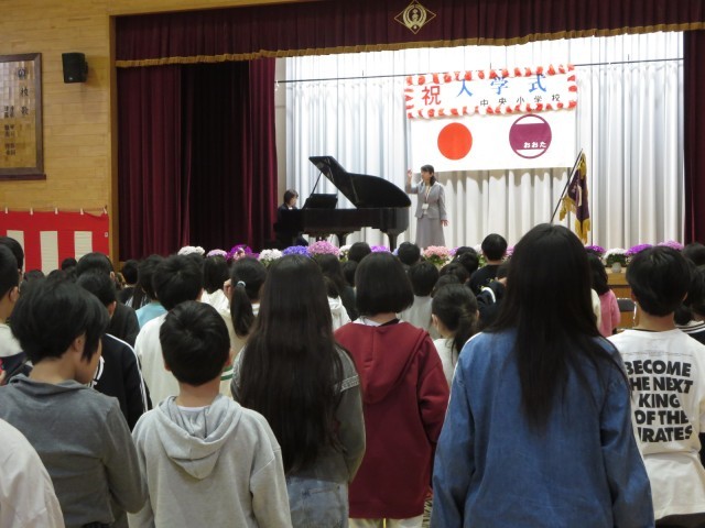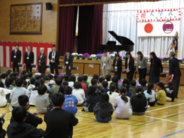 始業式では、体育館いっぱい力強い校歌が響きました。