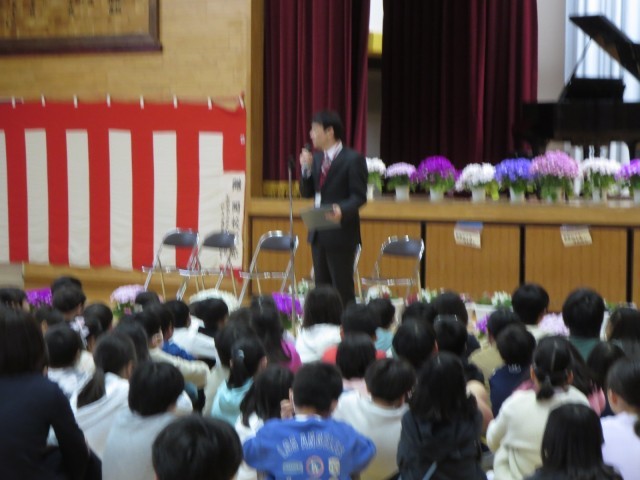 始業式の校長講話のテーマは「挑戦することの大切さ」です。
