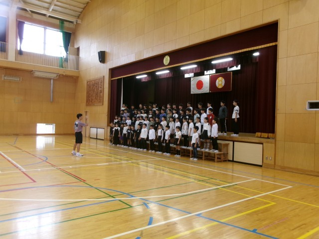 音楽集会の前には、先日行われた太田市陸上記録会に参加した児童の紹介と結果発表がありました。