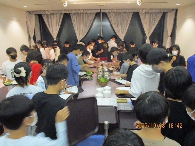 無事今晩の宿に着き、夕食です。昼間たくさん歩いたので、みんなお腹が空きました。