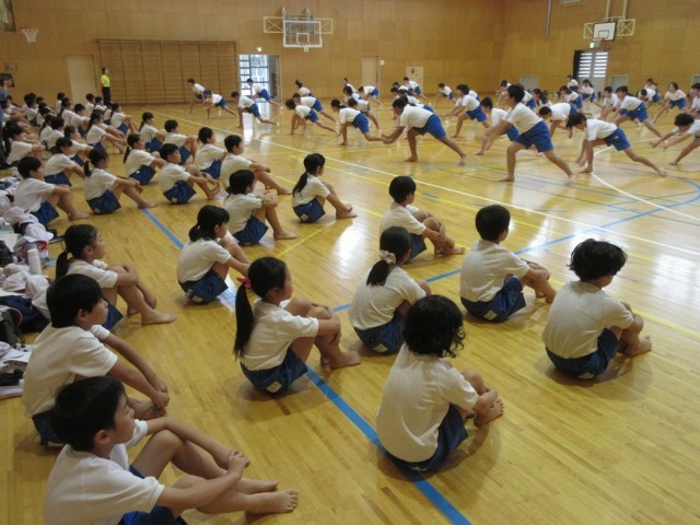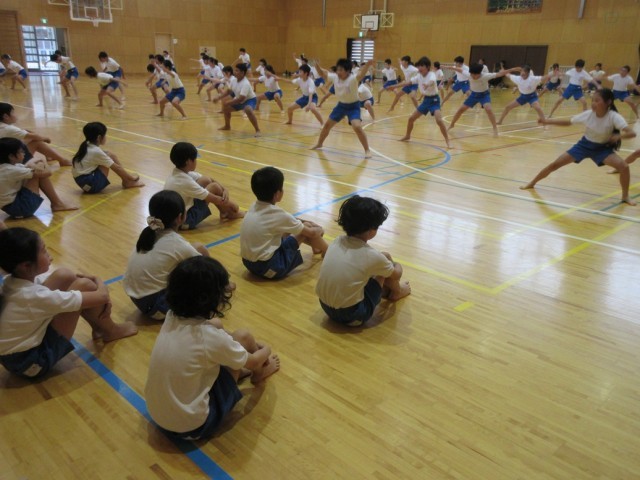 今日は、ソーラン節2回目となる6年生が5年生に手本を見せました。