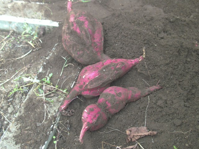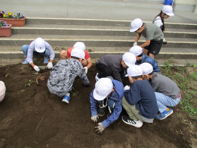 1学期に苗を植え、ぐんぐん育っていたサツマイモです。