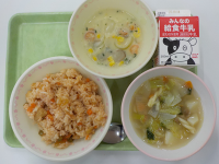 ロールパン、牛乳、カレーうどん、小松菜サラダ、小魚(青のり)