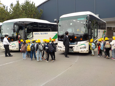 1年生にとっては、バスを使った小学校初の校外学習です。