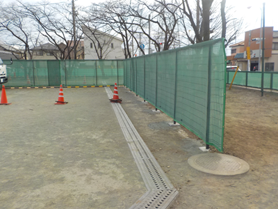 少し前になりますが、校庭南東の角に防砂ネットを設置していただきました。