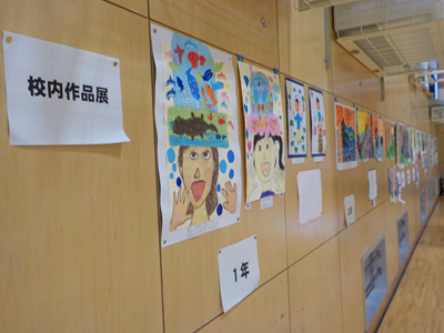 各学年から代表として選ばれた書写、図画工作の作品が展示されています。