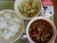 1/27(火) 献立コッペパン、リンゴジャム、牛乳、カレーシチュー、小松菜サラダ...