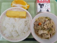 2/20 献立ご飯 牛乳 ツナ入り厚焼き卵 すき焼き風煮 デコポン