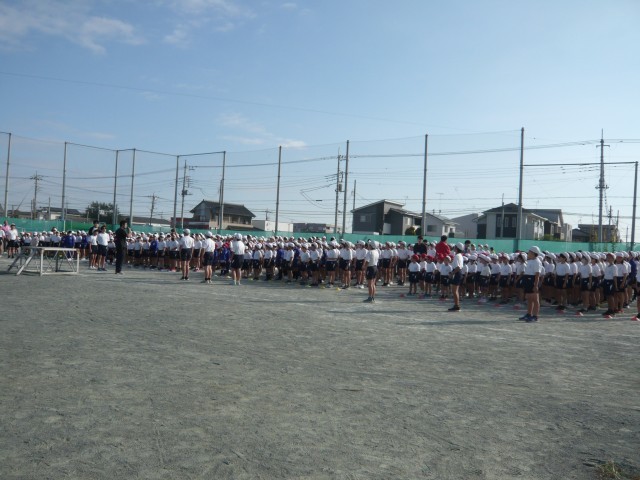 10月24日(金)、朝の運動の様子です。今朝は、運動会にむけて入場隊形に整列、行進、ラジオ体操の隊形、体操、もとの位置に戻る・・といった流れで練習しました。一人一人が一生懸命がんばっています。体育主任を中心に教職員は子どもたちの様子をじっくり観て、声かけをしていました。800人のエネルギーが溢れていました。