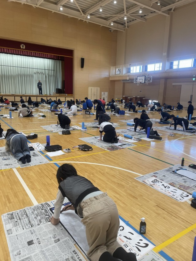 1月14日、3年生は体育館で書き初め大会をしました。