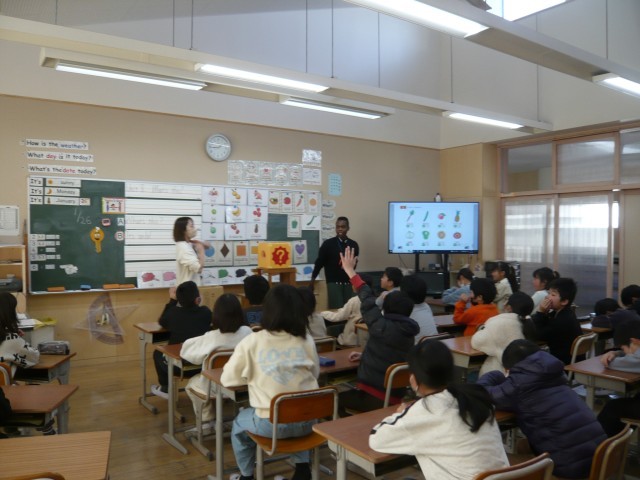 1月26日(月)の5校時、3年生外国語活動の授業の様子です。"What's this?" の質問に対し、しっかりと答えていました。❓ボックスの中に入っているものを、色、形を英語でヒントを伝え、英語で回答していました。楽しくはきはきと外国語に慣れ親しんでいました。