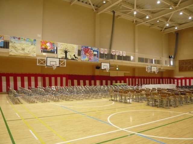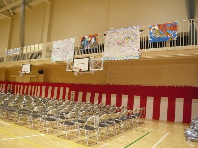 3月23日(月)午後、5年生の児童、教職員を中心に卒業式会場の設営、整備が行われました。明日の卒業式に向けて、5年生の児童は精一杯の感謝の気持ちを込めて取り組んでいました。会場準備が整いました。