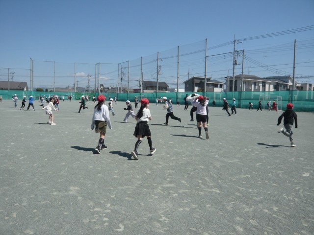 4月8日(水)、20分休みの校庭では、先生と一緒に元気に遊ぶ子どもたちがたくさん...