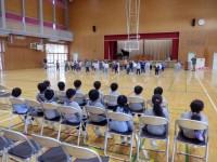 今日は、台之郷こども園の年長さんたちが学校見学に来ました。体育館では、1年生が明...