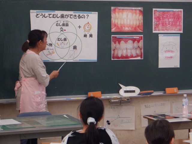 まず、歯科衛生士の皆さんから上手な歯の磨き方について説明してもらいました。