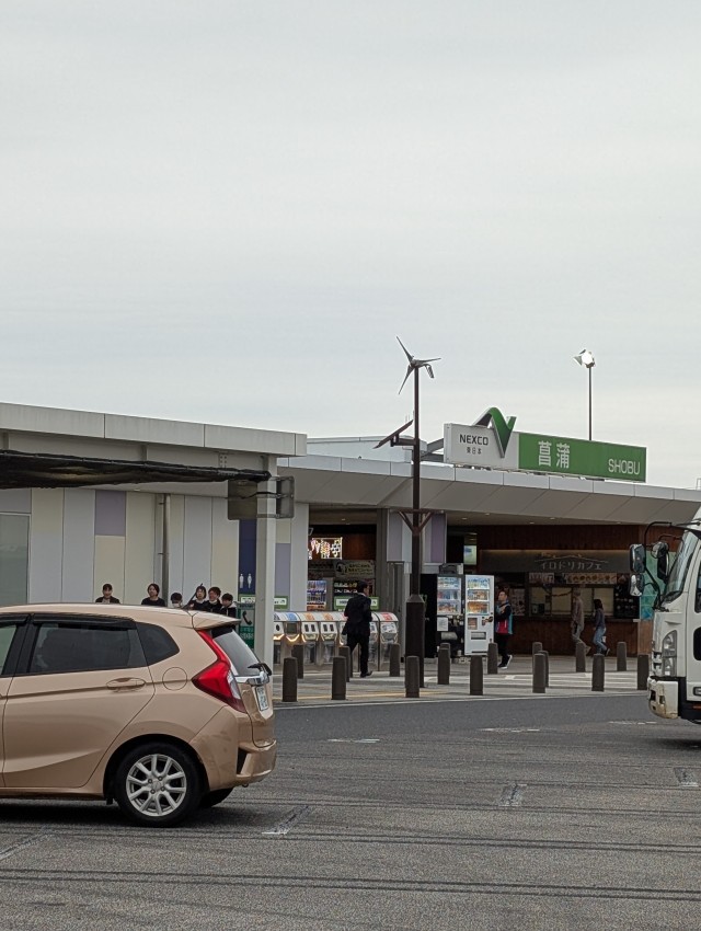 出発して1時間、菖蒲パーキングエリアに来ました。この先厚木から茅ヶ崎そして江の島を見ながら鎌倉に入ります。