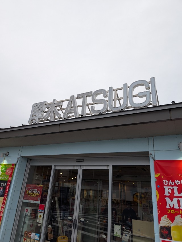 厚木パーキングエリアです。雨がパラパラと降っています。