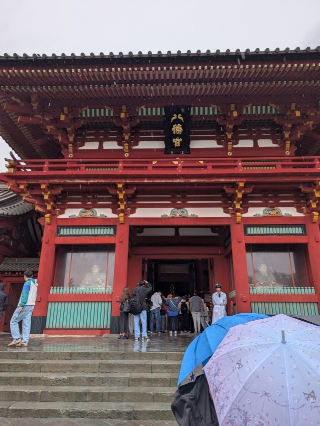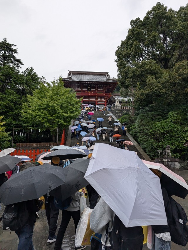 雨の中ですが、記念写真を撮ってから大階段を登って建物を見学してバスに戻りました。
