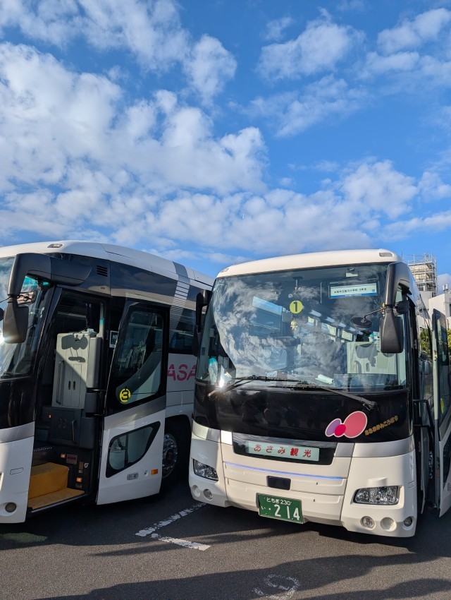 見学が終わり、バスは今出発しました。これから学校に帰ります。