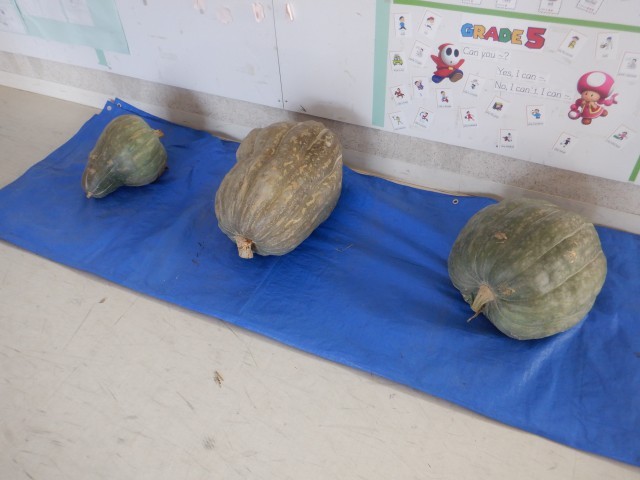 コンテストにも出した、20kg、30kgあるカボチャは、人目につきやすいところに置きました。