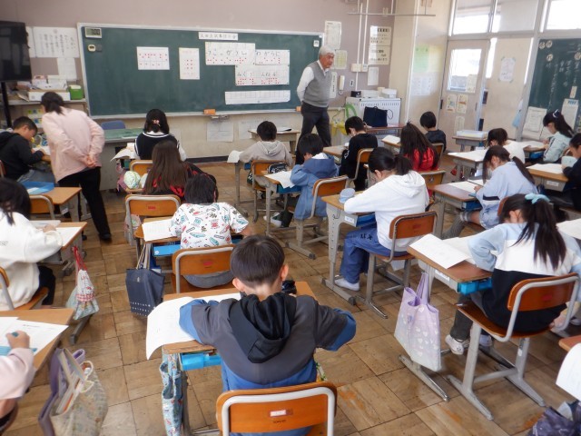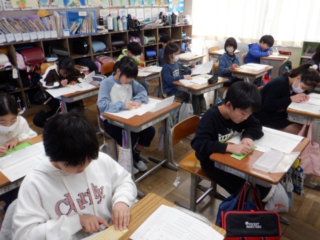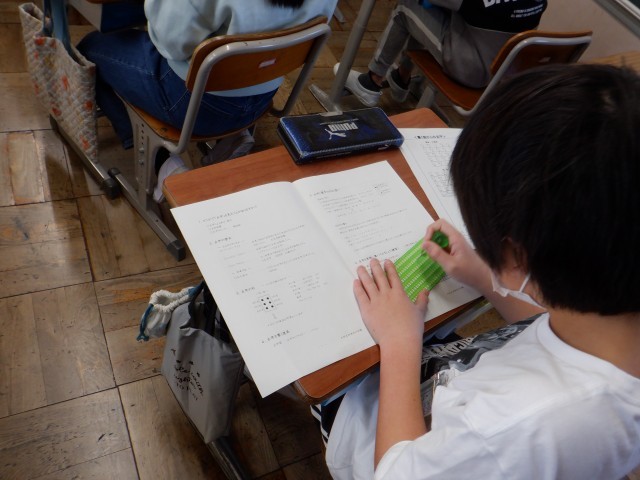 4年生は、総合の時間に「点字教室」をしました。点字協会の方が来校し、一通り説明をした後、早速点字をつくり始めました。