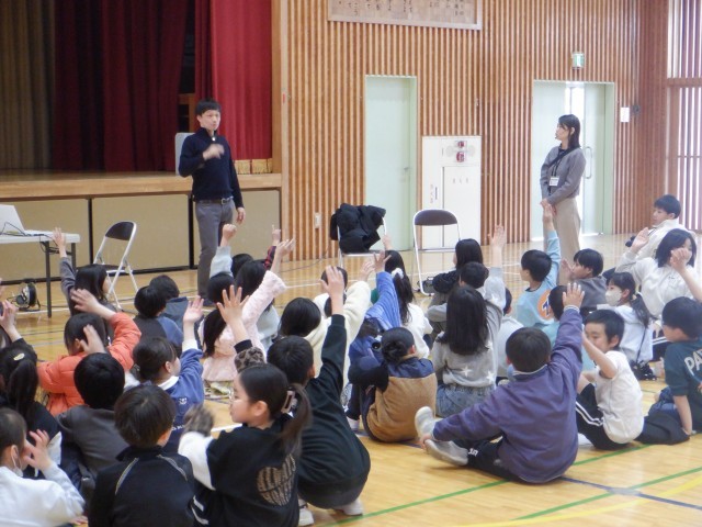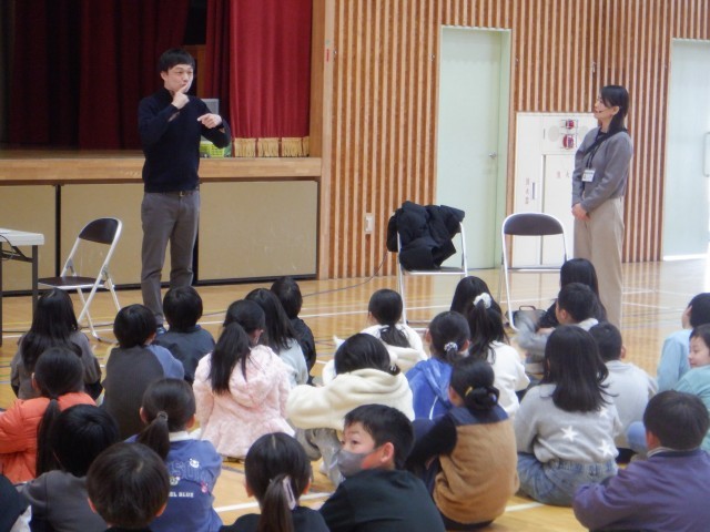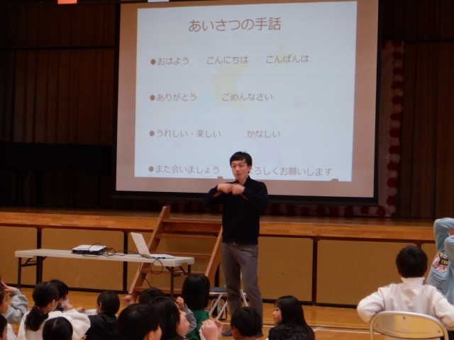 子ども達に知っている手話について尋ねたり、簡単な挨拶を手話で説明してくれたりしました。