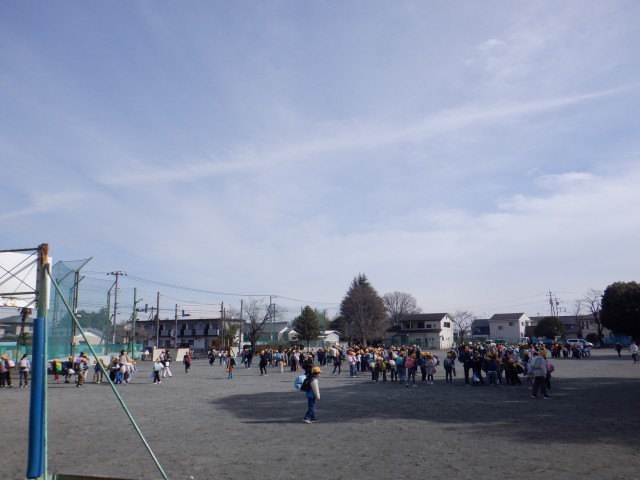 新しい通学班長が先頭になって、通学路を帰って行きました。