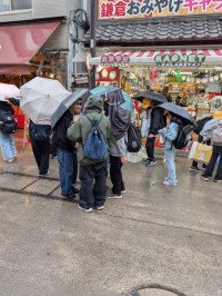午後になり、各グループが小町通りに集まってきました。雨は降っていますが、全員元気...