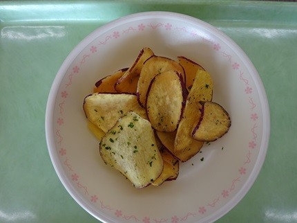 11月14日(金)の給食で、「さつまいもチップス」が提供されました。