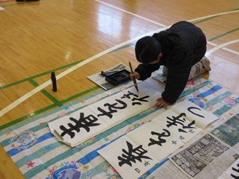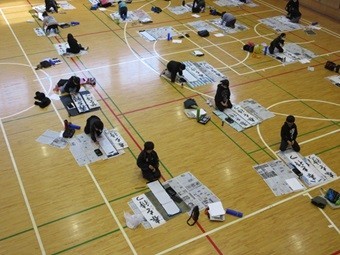 昨日に続き、本日は4年生が書き初め大会を体育館で行いました。