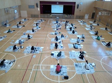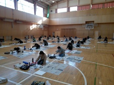 今週は、3年生から6年生が体育館で書き初め大会を行いました。