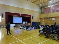 【写真】4年生は、助産師さんを講師にお招きして「命を育む講座」を、体育館で行いました。助産師さんのお話を伺って、命の大切さについて考えました。
