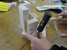 3年生は、木材と木材をくぎを使って接合して作品を制作していました。上手にかなづちを使ってくぎをうち、豊かなアイデアを活かして、キリンやロボットなどを作っていました。